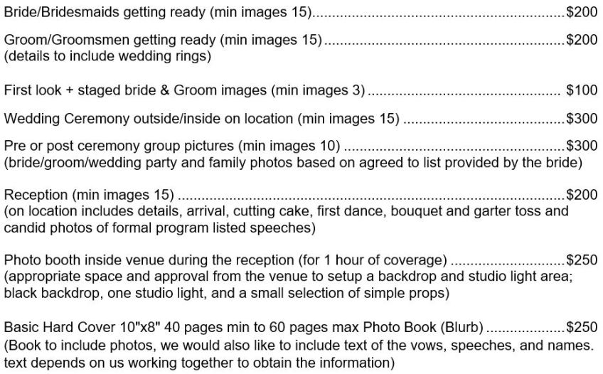 Wedding Pricing