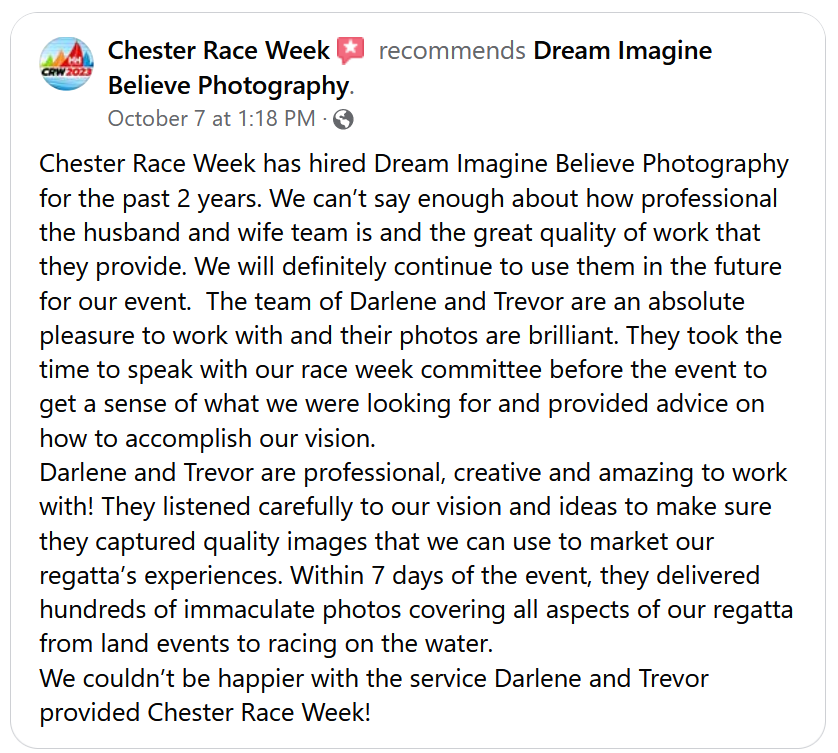 One of our specialties is photographing yacht races. We have experience photographing yacht races starting in 2021 with the Bluenose Races in Chester Nova Scotia, also Chester Race week 2022 & 2023, and the 2022 49er, 49erFX and Nacra 17 World Sailing Championships in Hubbards Nova Scotia. Using our professional camera equipment, knowledge and experience with wildlife and sports photography photographing yacht races is a great fit and we totally enjoy working hard to obtain the best images possible.